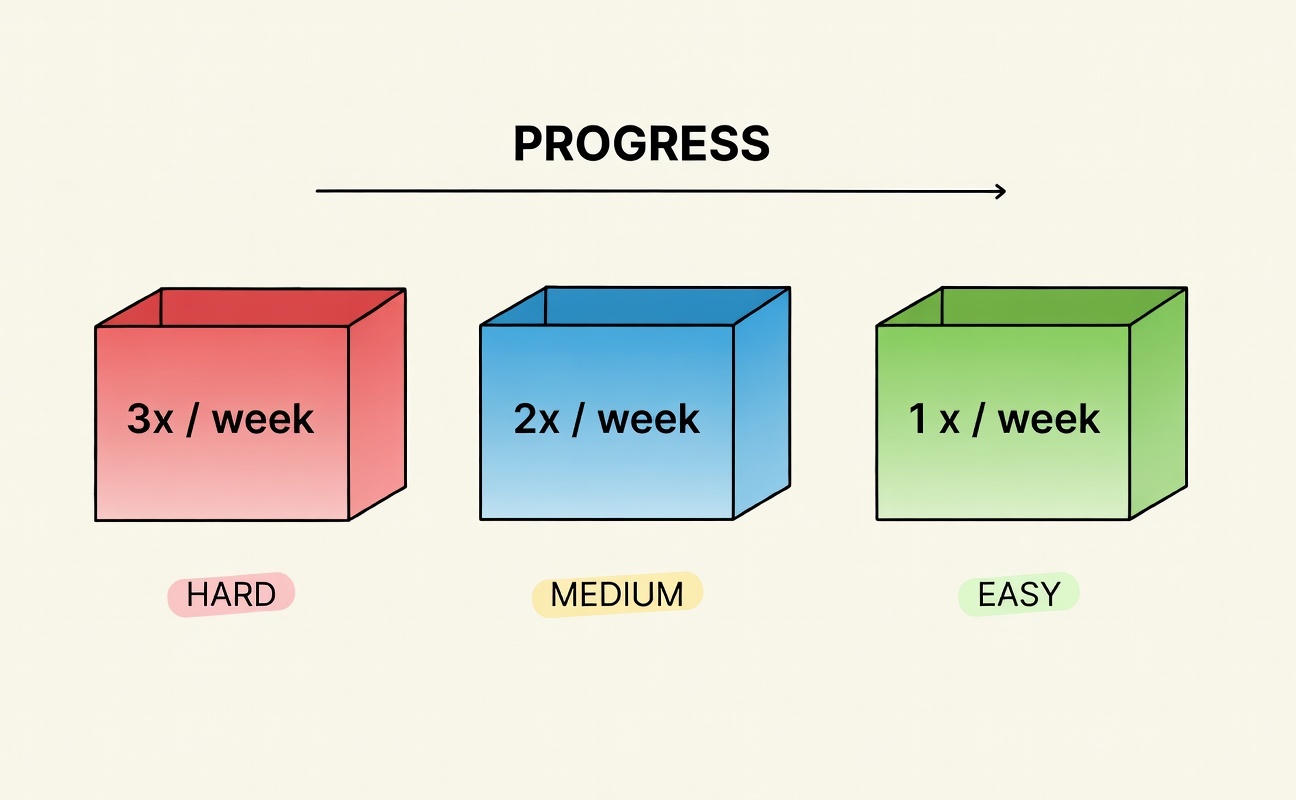 - Correct answer? Promote to the next box (reviewed less often, e.g., Box 2: every 2–3 days; Box 3: weekly).
